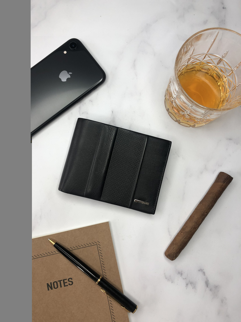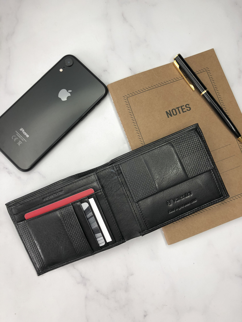 • Czarny portfel męski poziomy Valentini Yew z ochroną RFID.