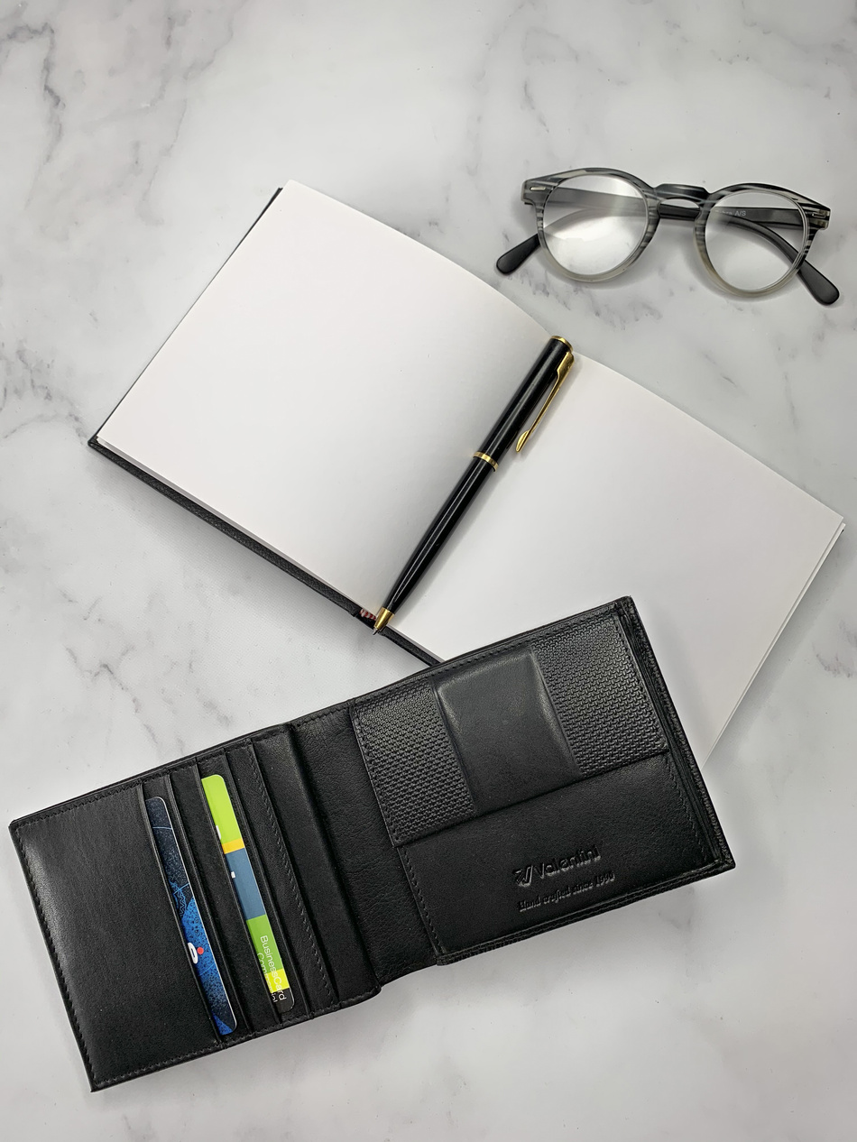 - Czarny portfel męski poziomy z ochroną RFID Valentini Yew.