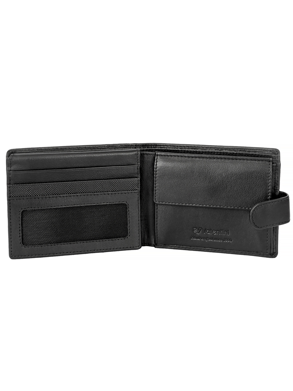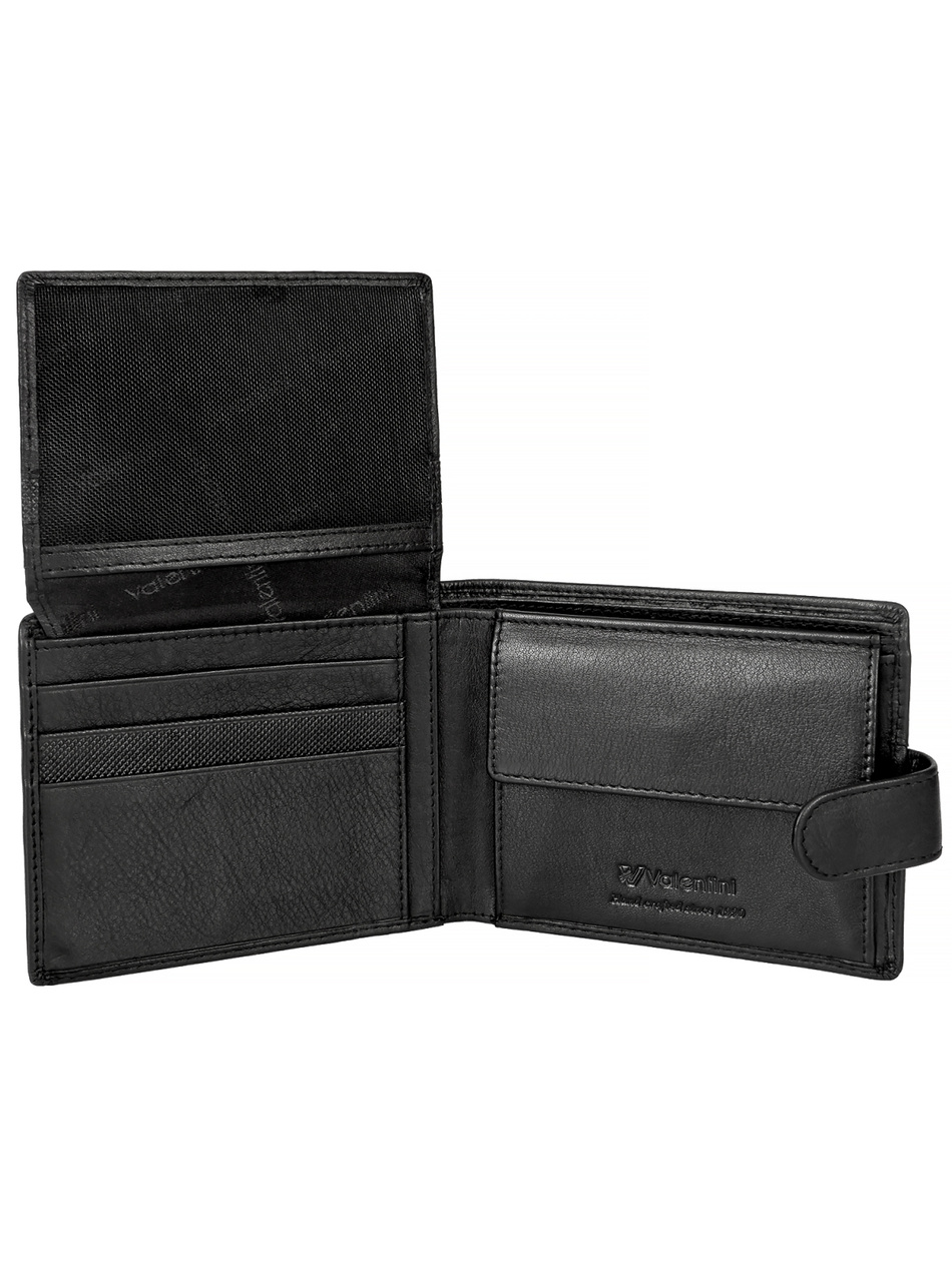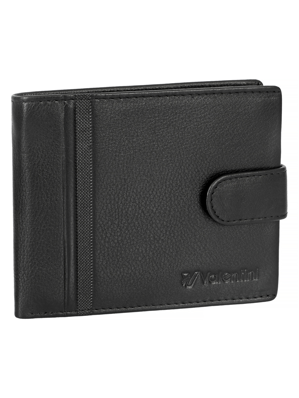 - Skórzany poziomy portfel męski zapinany na zatrzask z kolekcji Trophy od Valentini w kolorze czarnym.