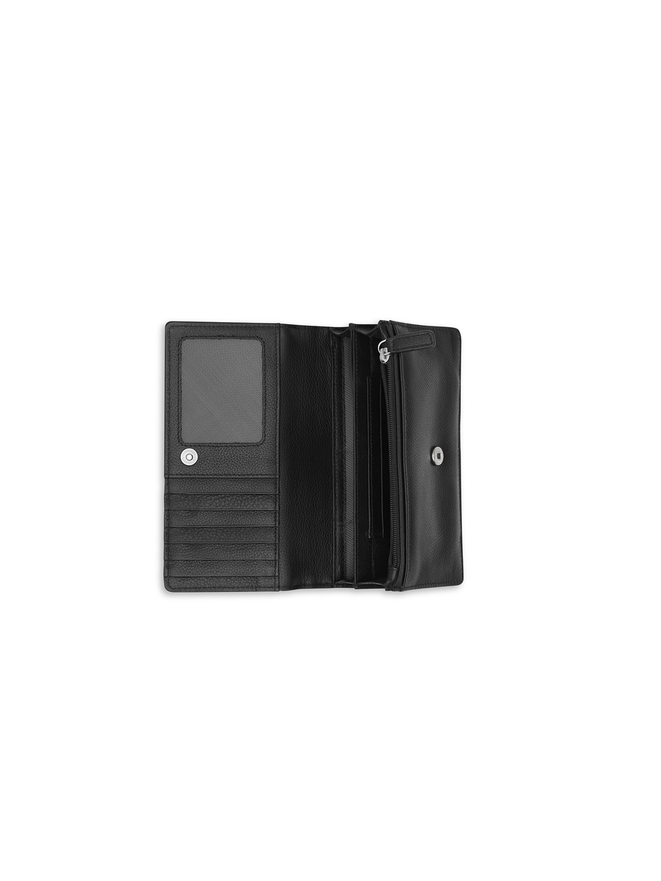 - Czarny portfel damski wykonany ze skóry naturalnej od Valentini.