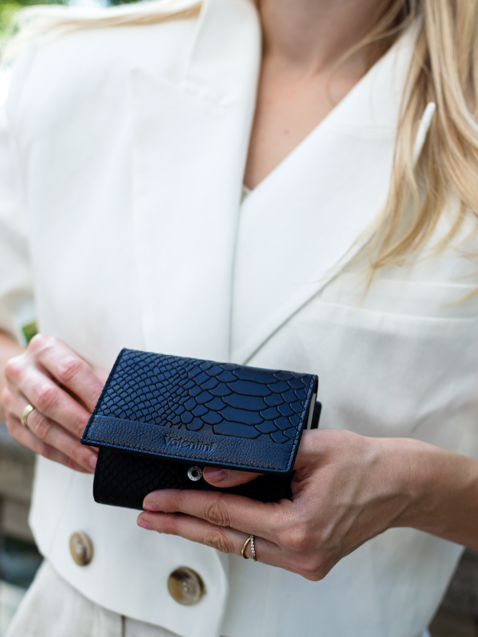 - Mały portfel damski wykonany ze skóry naturalnej od Valentini z kolekcji Caimani to idealny wybór dla kobiet, które cenią sobie połączenie stylu, bezpieczeństwa i funkcjonalności.