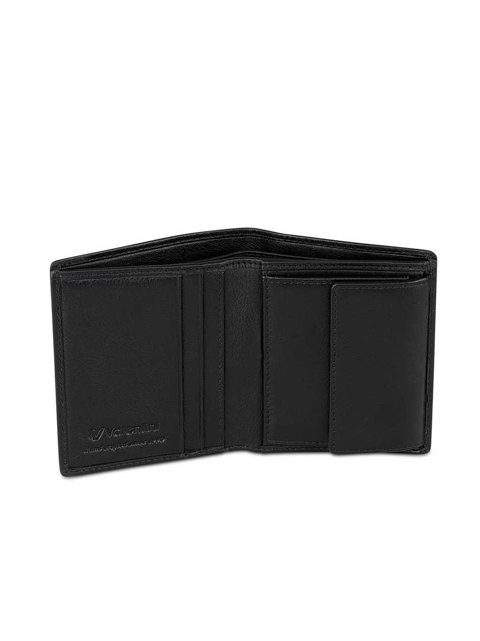 Poznaj męski portfel z kolekcji Yew II, który łączy klasyczny design z nowoczesnym wykończeniem. Wykonany z wysokiej jakości skóry, wyróżnia się interesującym połączeniem gładkiej powierzchni z teksturowanym akcentem. Głęboka czerń dodaje mu uniwersalnego charakteru, idealnego na każdą okazję. Portfel oferuje praktyczne rozwiązania, takie jak przegrody na karty, miejsce na banknoty oraz kieszeń na monety, co gwarantuje wygodną organizację. To stylowy i funkcjonalny dodatek, który spełni oczekiwania każdego mężczyzny.
