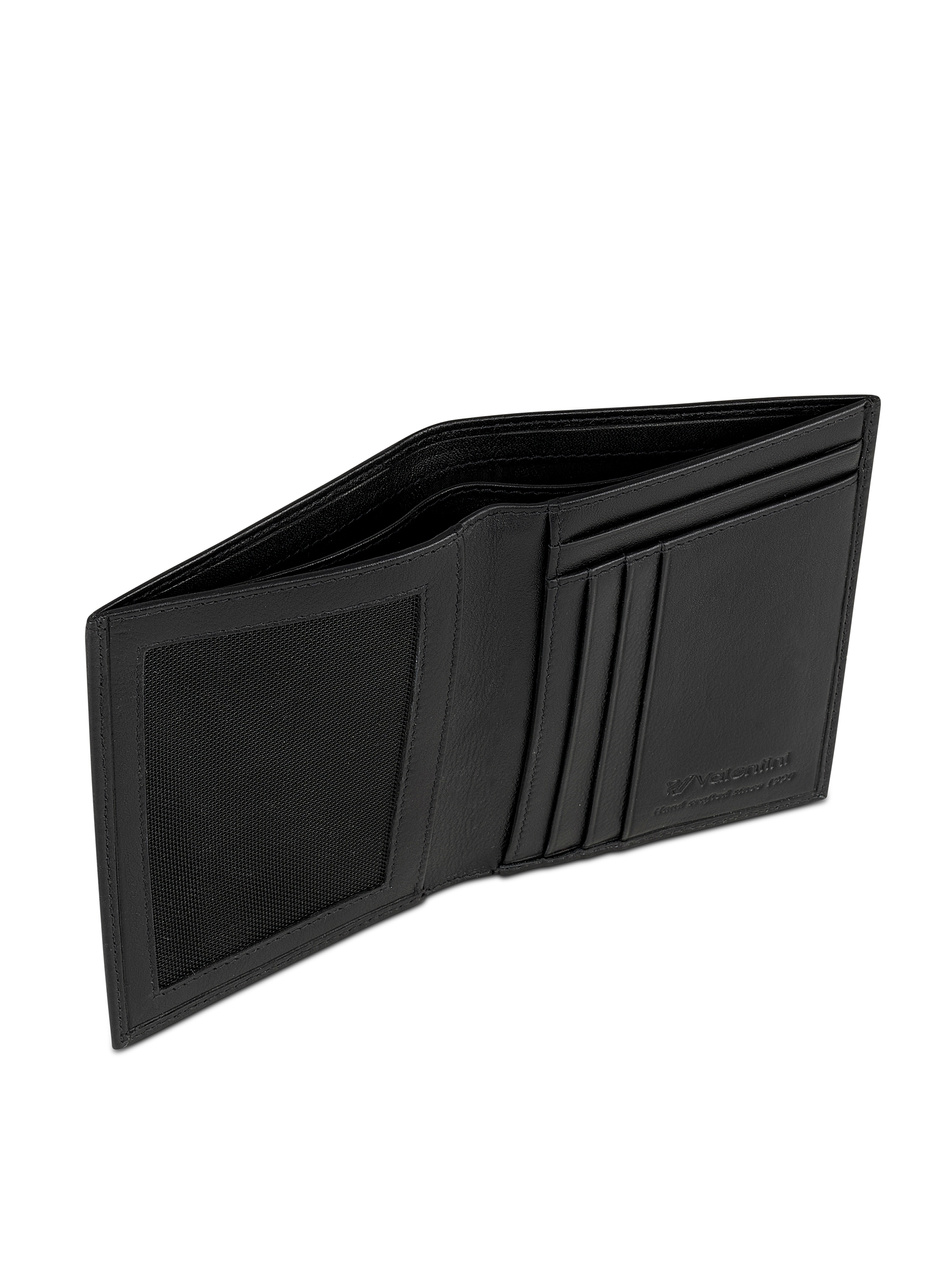 Ten portfel bez kieszeni na monety został zaprojektowany z myślą o mężczyznach preferujących płatności bezgotówkowe. Brak dodatkowej kieszeni na drobne czyni go lżejszym i bardziej kompaktowym, co przekłada się na większy komfort użytkowania. Wewnątrz znajdują się przegrody na karty oraz miejsce na banknoty, co pozwala na łatwą organizację najważniejszych rzeczy.