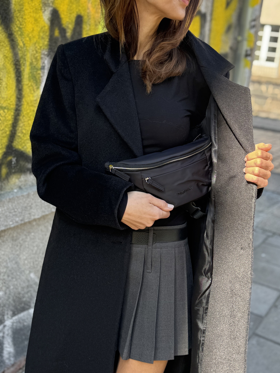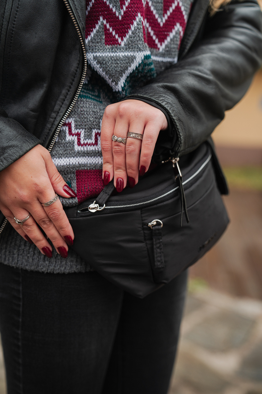 • Pojemna nerka z zewnętrzną kieszenią na suwak – szybki dostęp do telefonu, kluczy i drobiazgów w każdej sytuacji.