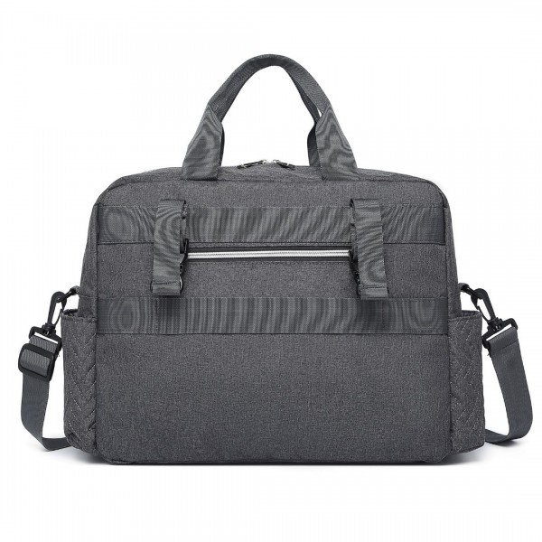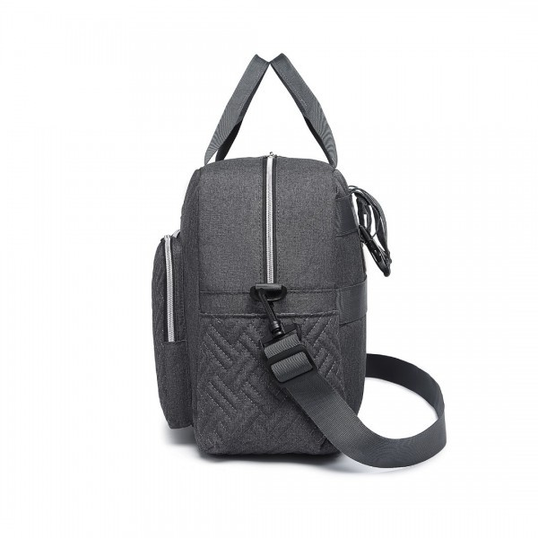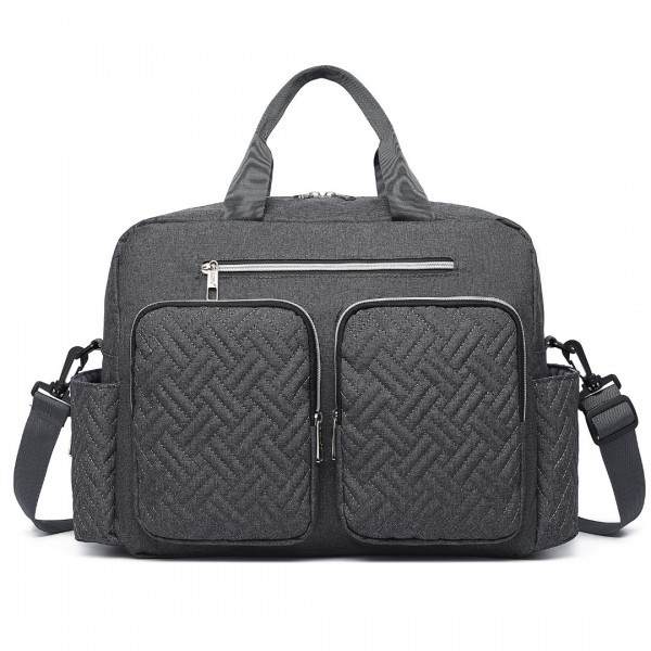 Oferując wiele opcji noszenia, ta torba na pieluchy zawiera odpinany wyściełany pasek na ramię zapewniający wygodę, uchwyty do szybkiego chwytania i przenoszenia oraz paski do zawieszenia na wózkach w celu użycia bez użycia rąk.