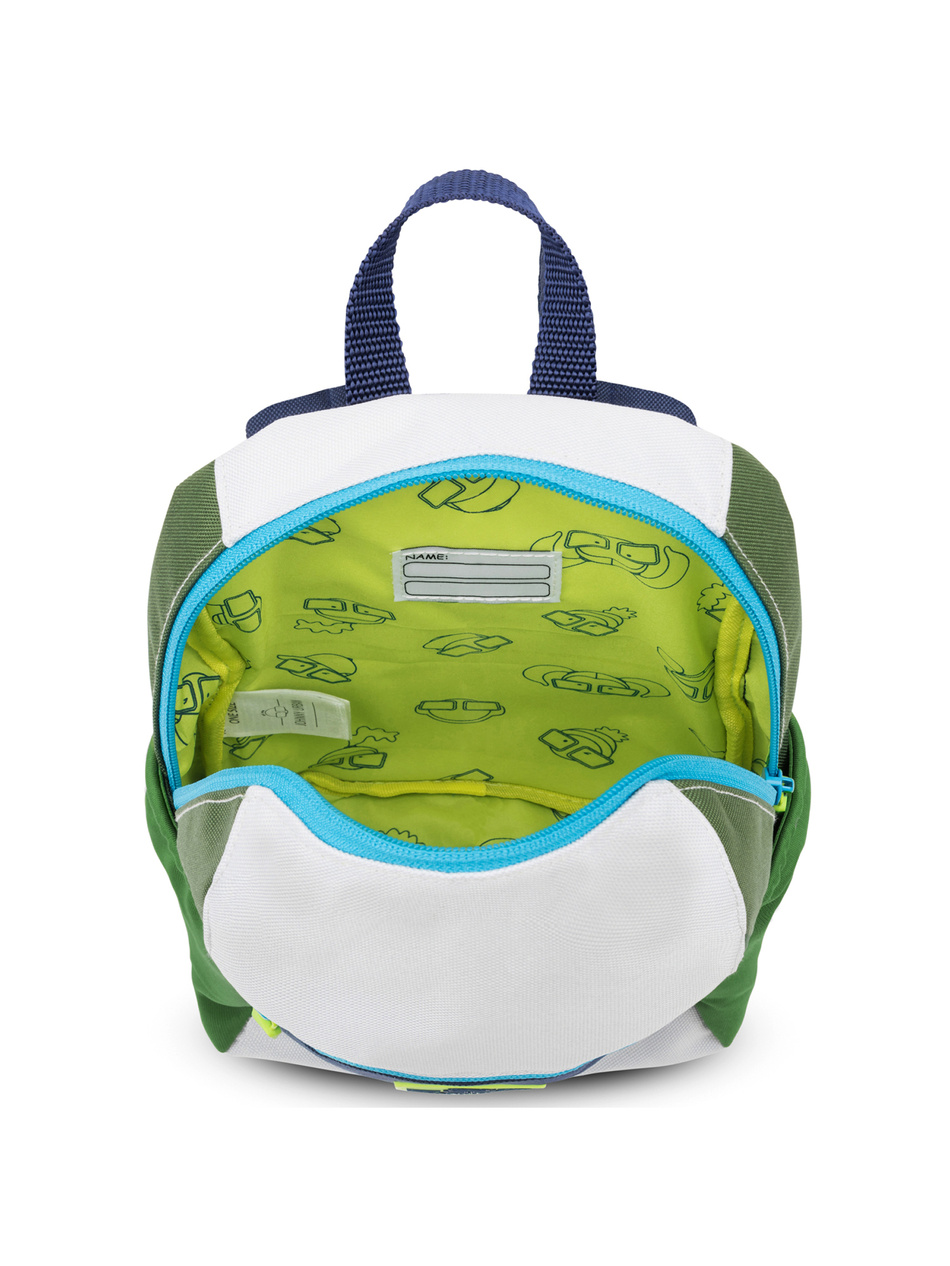 - Etykieta z miejscem na wpisanie imienia - ułatwia znalezienie plecaka dziecka