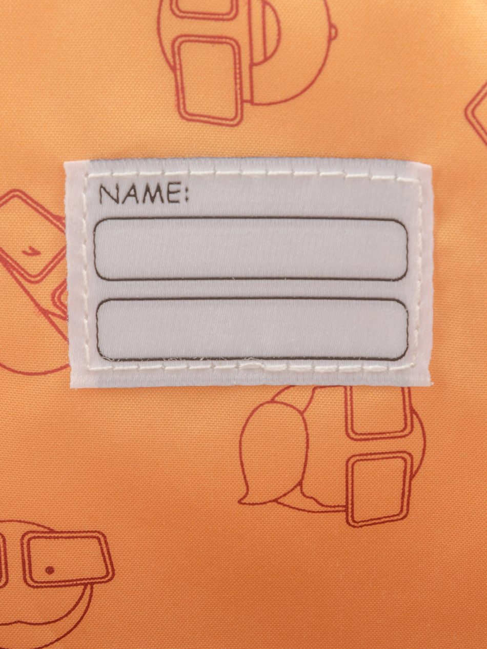 - Etykieta z miejscem na wpisanie imienia - ułatwia znalezienie plecaka dziecka