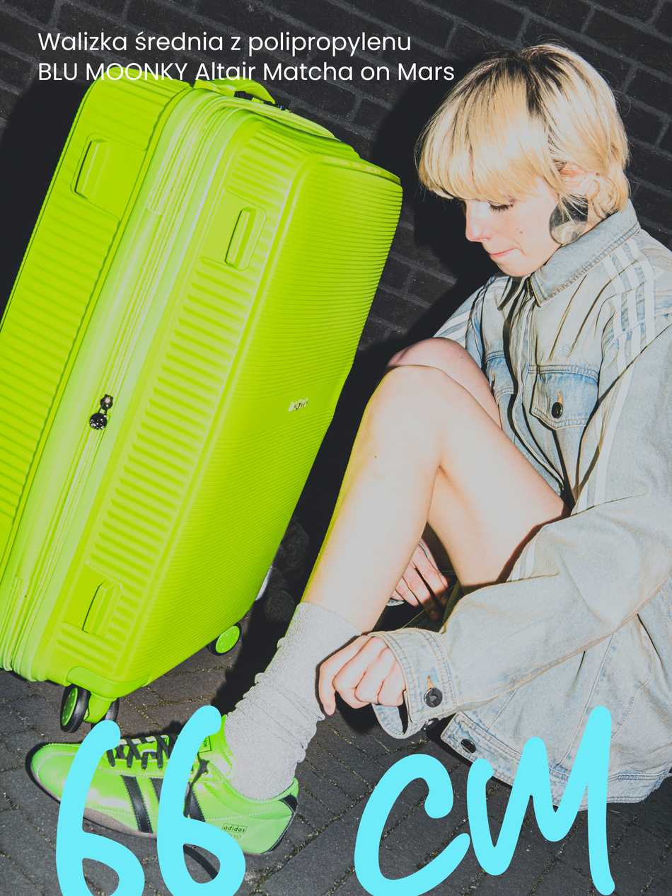 BLU MOONKY Altair w zestawie 55/66/77 cm w kolorze Matcha on Mars to rozwiązanie dla tych, którzy chcą być gotowi na każdą podróż. Od weekendu w Mediolanie, przez tygodniowy urlop, po trzytygodniową wyprawę – zawsze masz walizkę dopasowaną do planu. Wszystkie rozmiary łączy lekka, a jednocześnie solidna konstrukcja, świetna zwrotność i organizacja wnętrza, która trzyma Twój bagaż w ryzach.