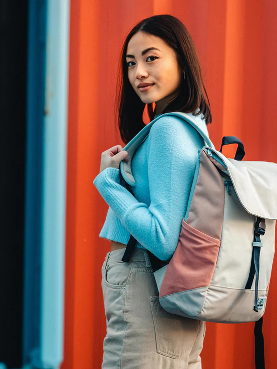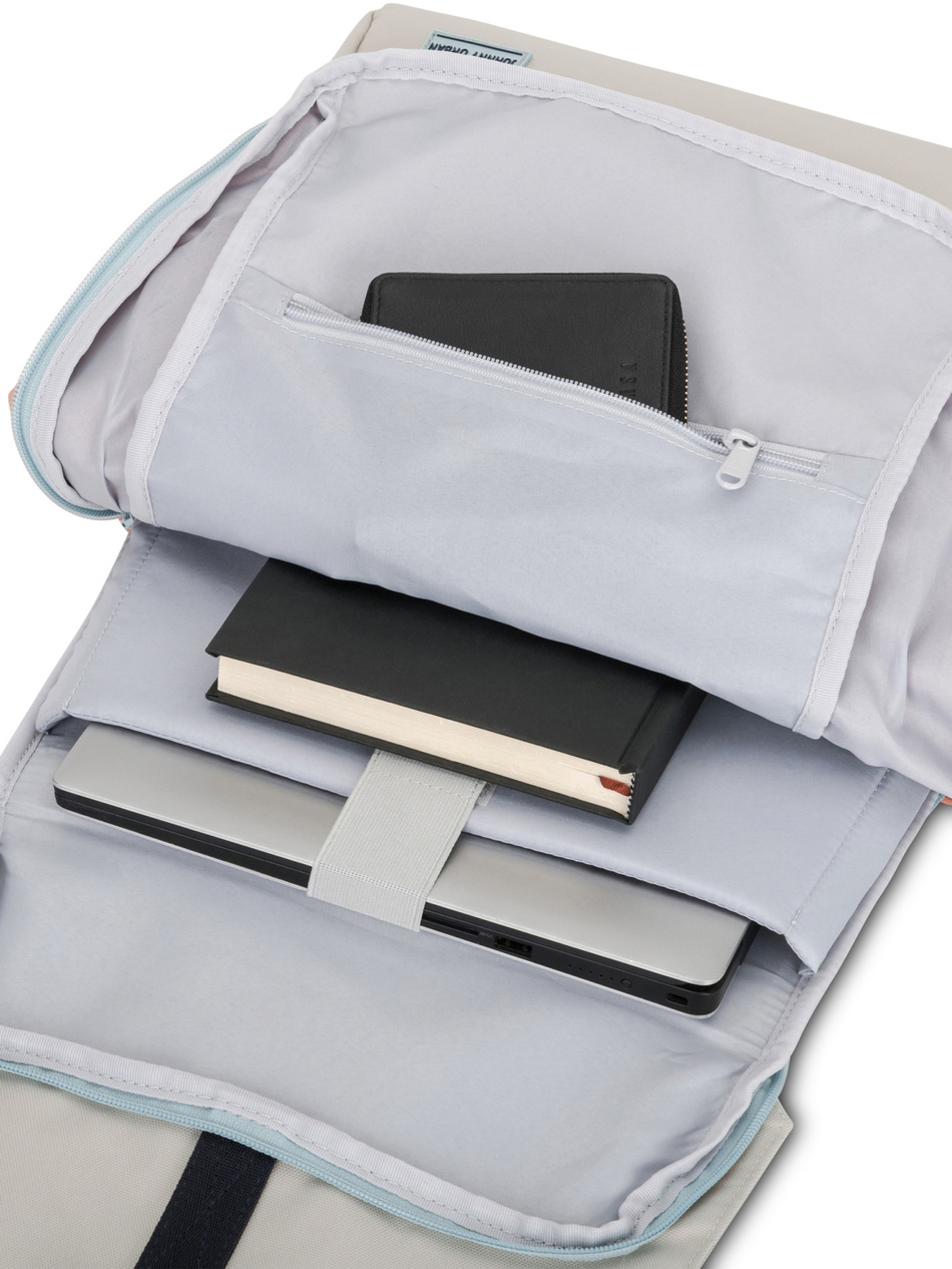 - Lekki plecak powiększany z materiału rPET, hydrofobowy, z kieszenią na tablet – idealny na co dzień, do pracy lub na spacer.