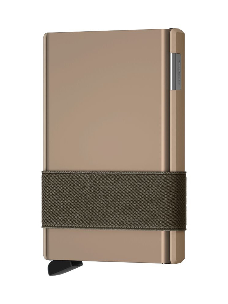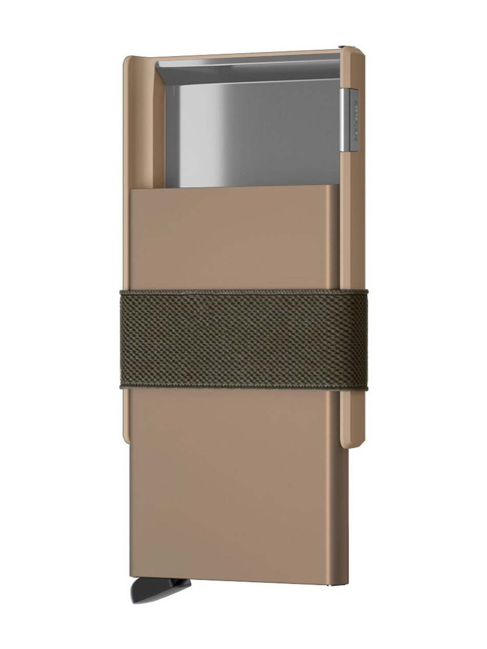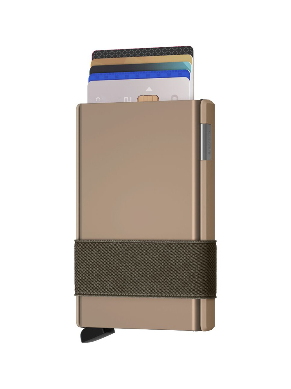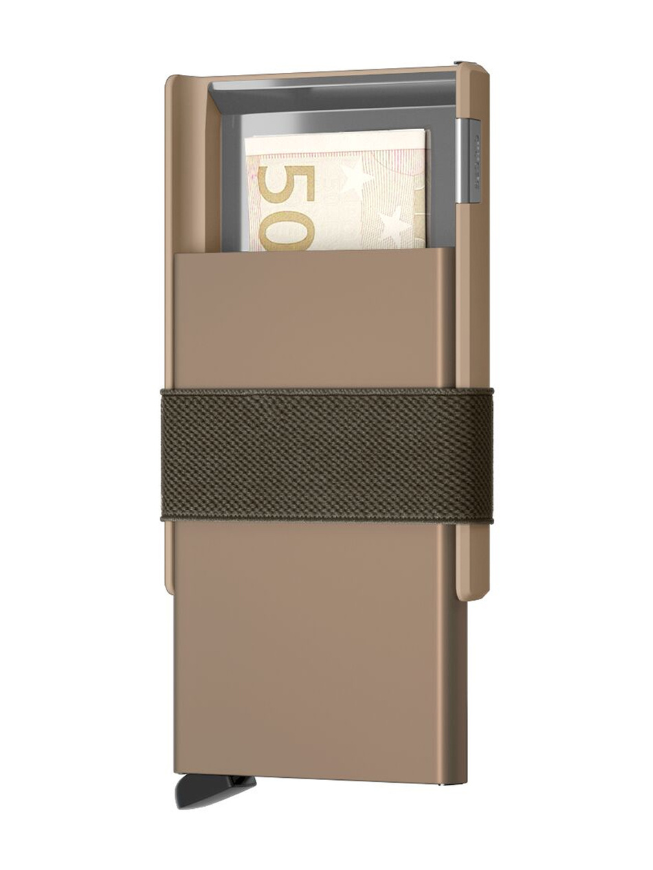SECRID Cardslide to nowoczesny portfel slim RFID w kolorze złotym, dla kobiet i mężczyzn, który chroni karty kredytowe przed kradzieżą danych i jednocześnie dopasowuje się do Twojego stylu życia. Możesz korzystać wyłącznie z aluminiowego Cardprotectora dla minimalistycznej ochrony kart, dodać elastyczny Moneyband na banknoty i paragony lub rozsuwaną część Slide, która pomieści wizytówki, monety czy klucze. Dzięki modułowej budowie to portfel antykradzieżowy łączący technologię bezpieczeństwa RFID z funkcjonalnością i ponadczasowym designem – zawsze kompaktowy, lekki i wygodny, mieszczący się w każdej kieszeni czy torebce.