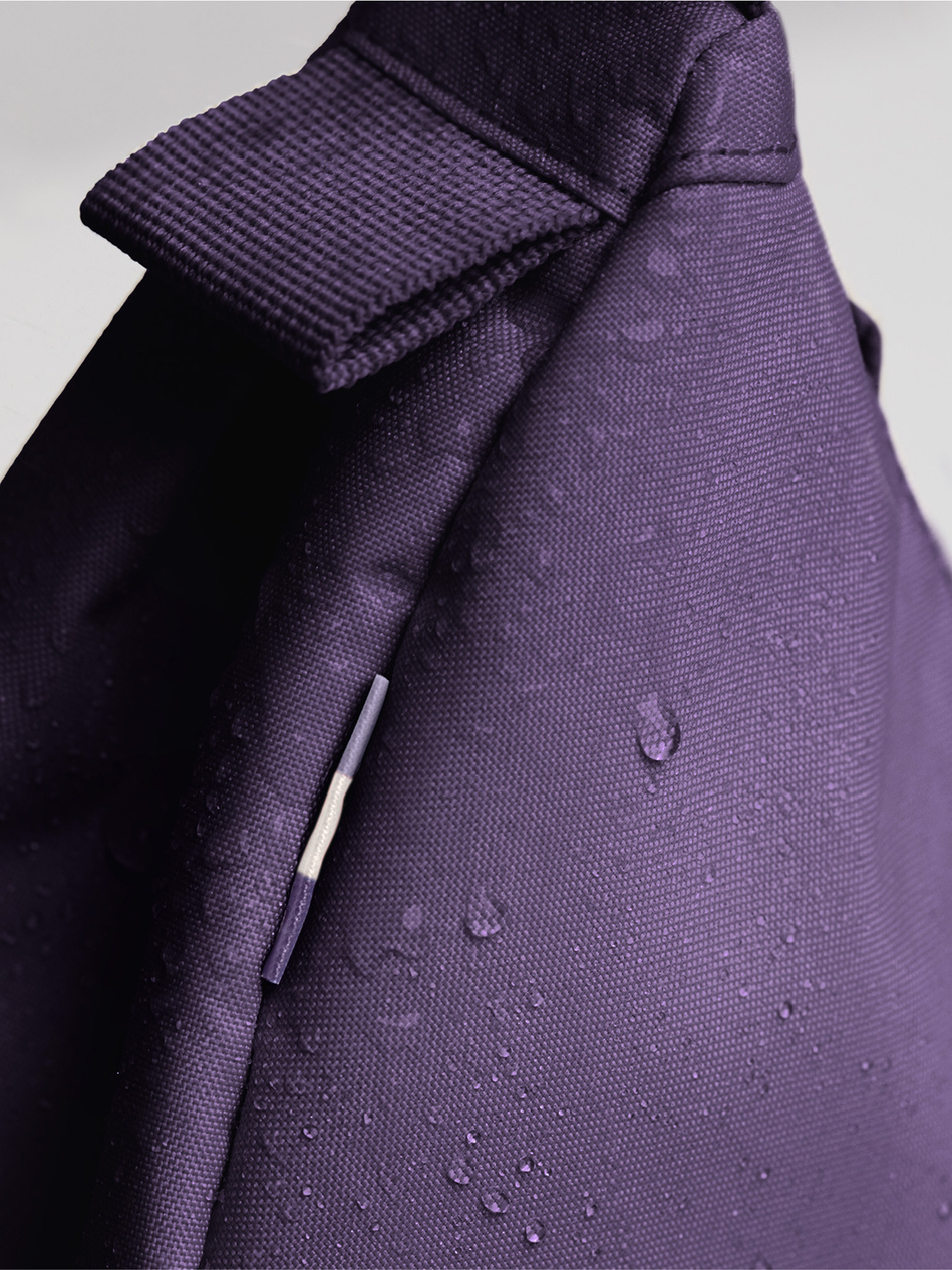 Torba została wykonana niemal w całości z materiałów pochodzących z recyklingu, w tym z Ocean Impact Plastic – tworzywa odzyskiwanego z oceanów. Główna tkanina RE:PET, podszewka z recyklingowanego PET, zamki z recyklingowanego nylonu, a także klamry i taśmy wykonane z odzyskanych tworzyw sztucznych to dowód na to, że styl i odpowiedzialność środowiskowa mogą iść w parze. Dodatkowo materiał został zabezpieczony powłoką PU od spodu oraz warstwą DWR od zewnętrznej strony, co zapewnia skuteczną ochronę przed wilgocią – bez użycia PFAS i PVC.