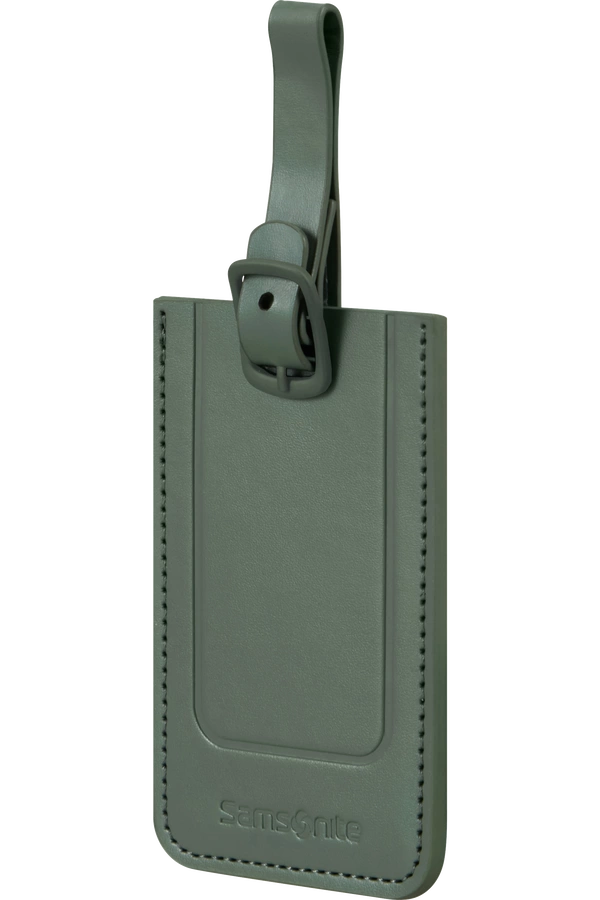 - Prostokątna przywieszka bagażowa z wytłoczonym logo Samsonite.