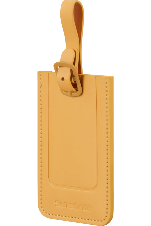 - Prostokątna przywieszka bagażowa z wytłoczonym logo Samsonite.