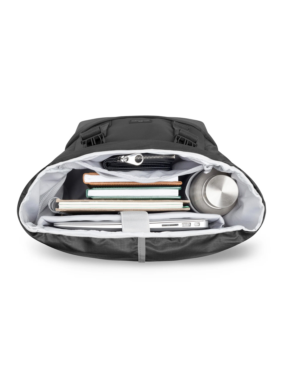 - Funkcjonalny plecak miejski z dolną komorą, szybkim bocznym dostępem i wyściełaną przegrodą na laptopa 15.6″.