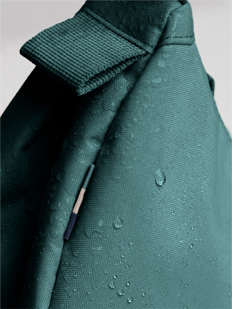 - Materiał: RE:PET z Ocean Impact Plastic (recyklingowany plastik z oceanów), podszewka i taśmy z recyklingowanego PET, klamry z POM, zamek błyskawiczny z recyklingowanego nylonu