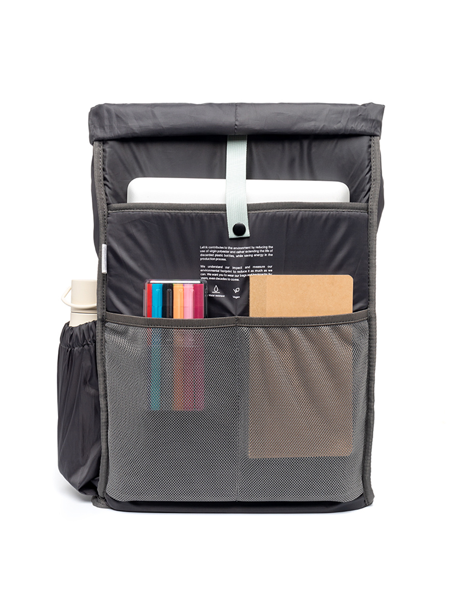 • Stylowy plecak miejski o minimalistycznym designie i pojemności 19 l. Wykonany z wodoodpornej tkaniny RPET pochodzącej z recyklingu butelek PET – trwały, ekologiczny i wegański.
