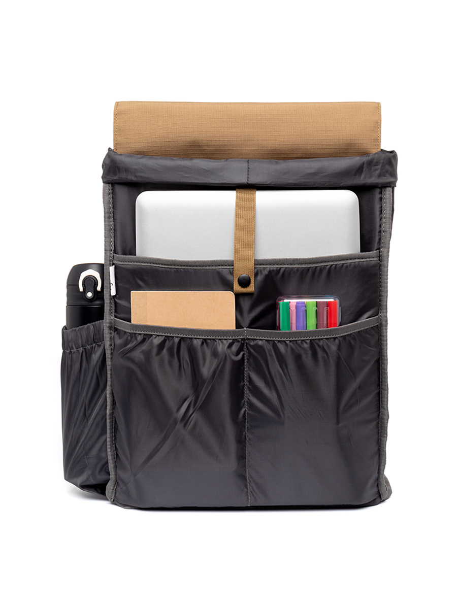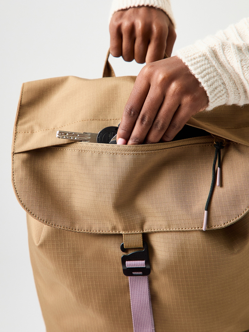- Stylowy plecak miejski o minimalistycznym designie i pojemności 19 l. Wykonany z wodoodpornej tkaniny RPET pochodzącej z recyklingu butelek PET – trwały, ekologiczny i wegański.