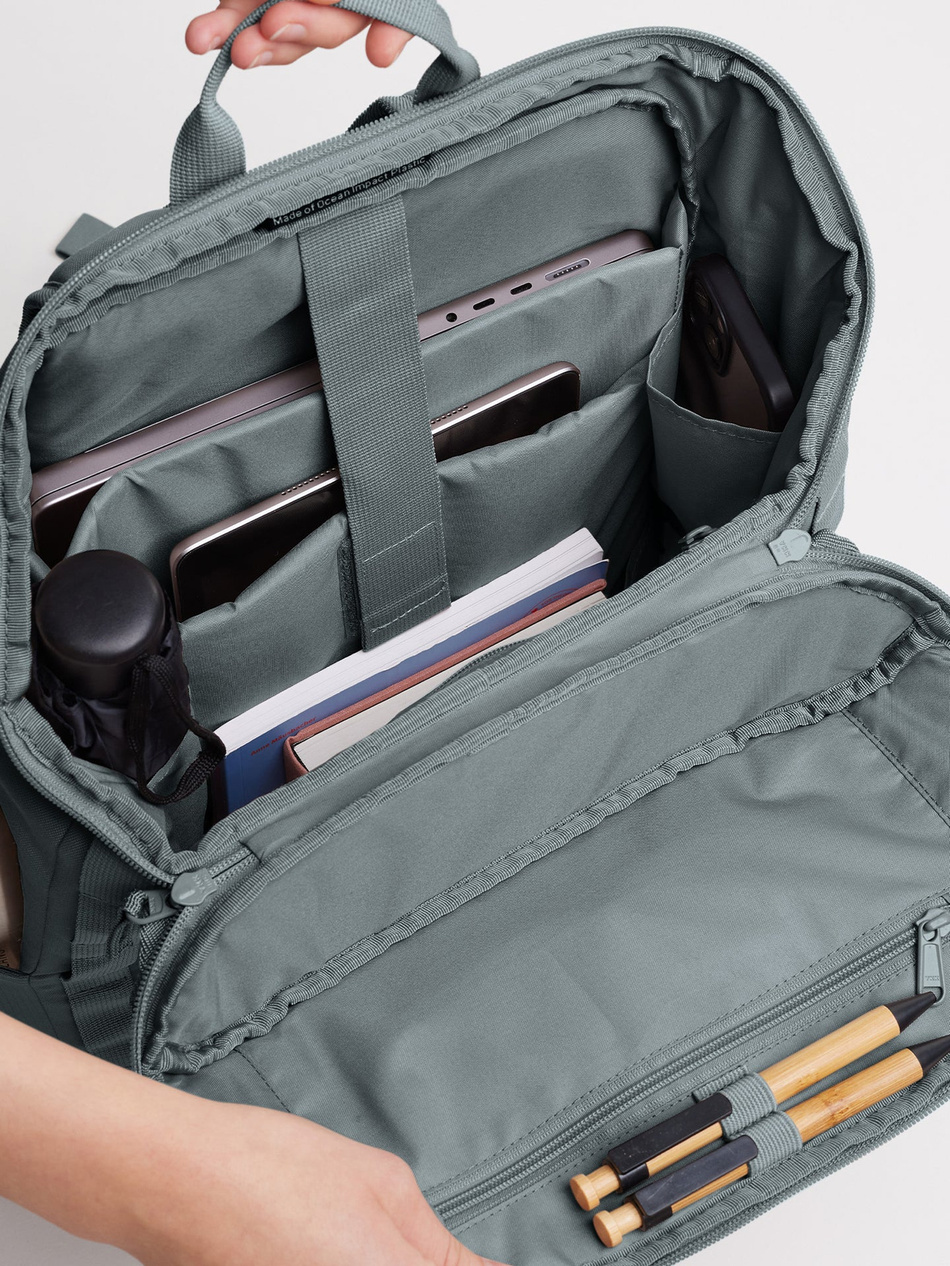 • Profesjonalny plecak miejski z wodoodpornego materiału RE:PET, z przegrodą na laptop do 16″ i wieloma kieszeniami.