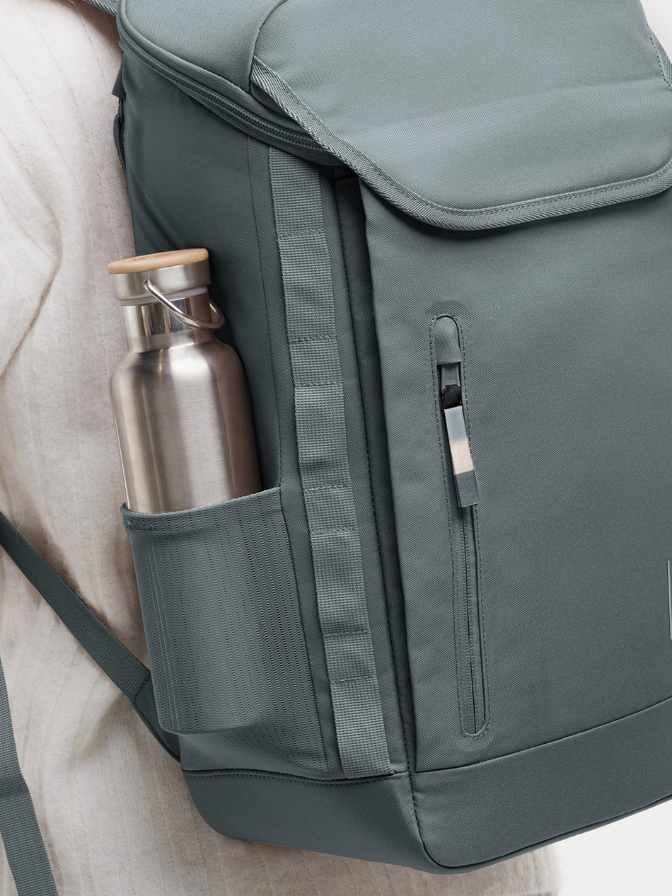• Materiał z recyclingu: RE:PET z Ocean Impact Plastic, podszewka z recyklingowanego PET, zamki z recyklingowanego nylonu, klamry z POM, wolny od PFAS* i PVC*