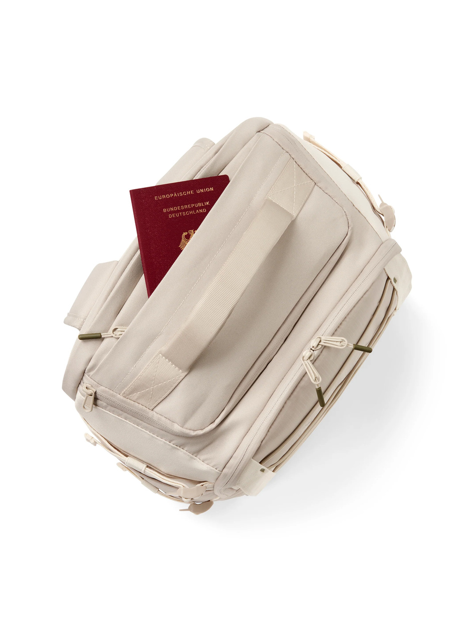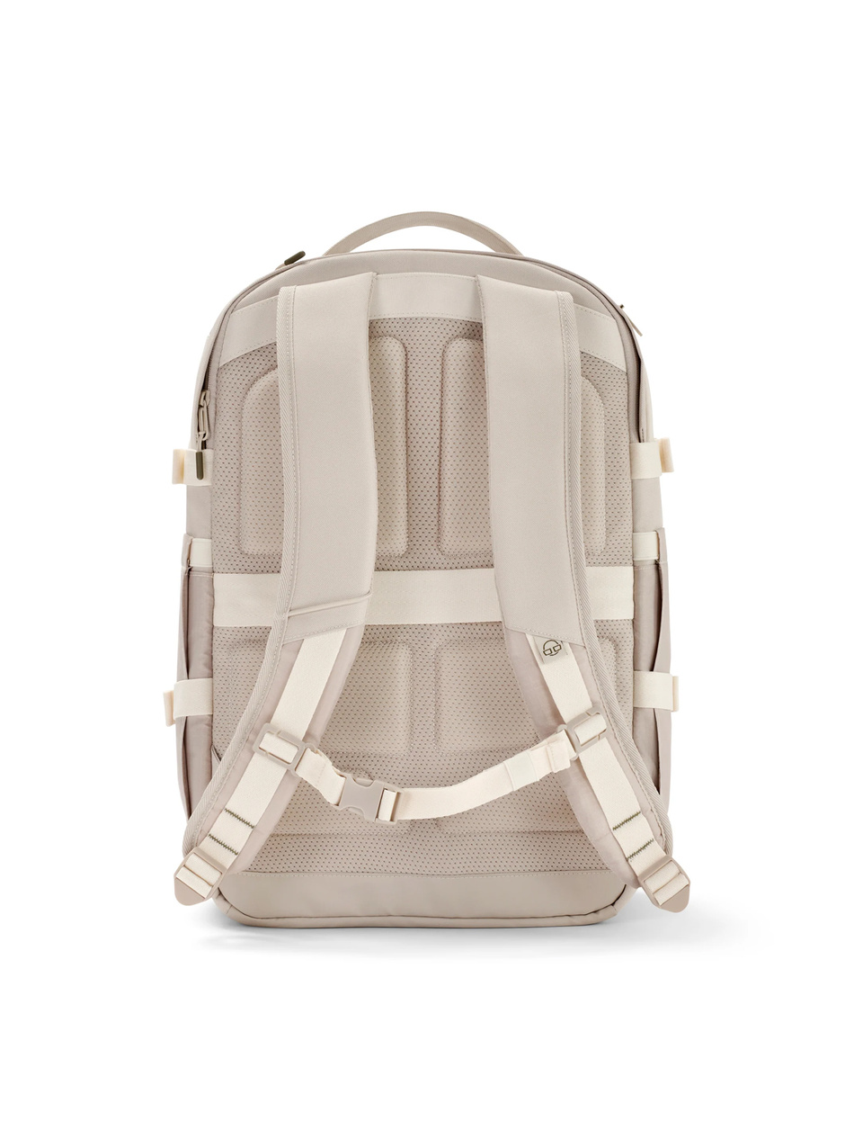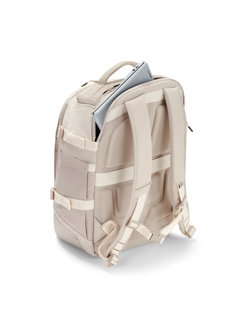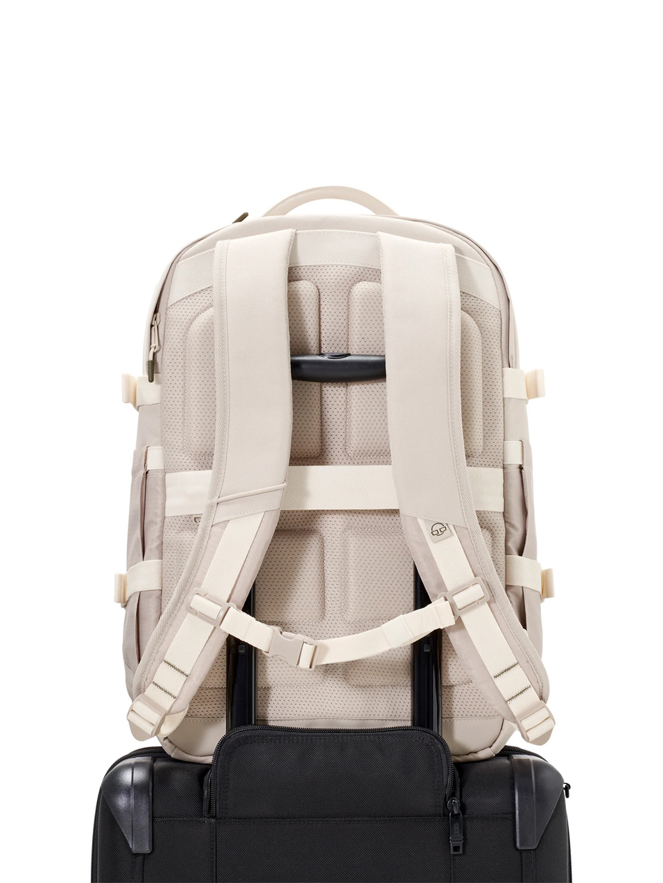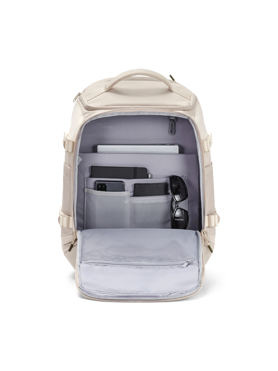 - Komfort noszenia – miękko wyściełane szelki, siatkowe plecy, odpinany pas piersiowy i uchwyt na walizkę (luggage sleeve) dbają o wygodę nawet przy pełnym obciążeniu.