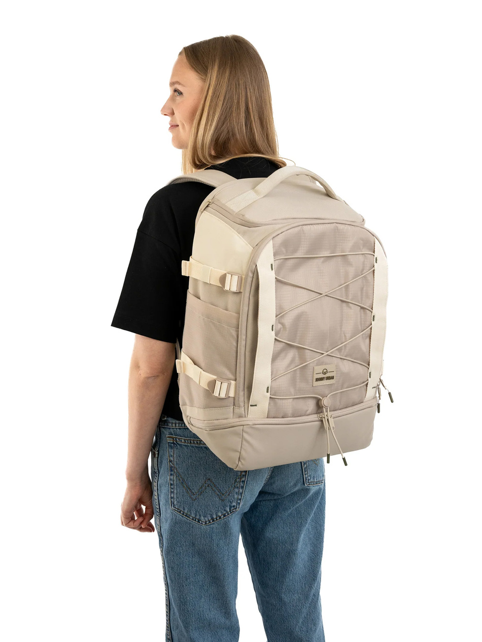 JOHNNY URBAN Jack w kolorze beżowym to wszechstronny plecak, który sprawdzi się zarówno w podróży, jak i w codziennej pracy. Dzięki pojemności 30,5 l zmieścisz w nim laptop do 16″, ubranie na trening, dokumenty czy akcesoria elektroniczne. Liczne kieszenie ułatwiają utrzymanie porządku, a dostęp zarówno od przodu, jak i od góry zwiększa wygodę. Wodoodporny materiał i ekologiczne wykończenie sprawiają, że plecak nie tylko dobrze wygląda, ale także jest gotowy na zmienne warunki pogodowe.
